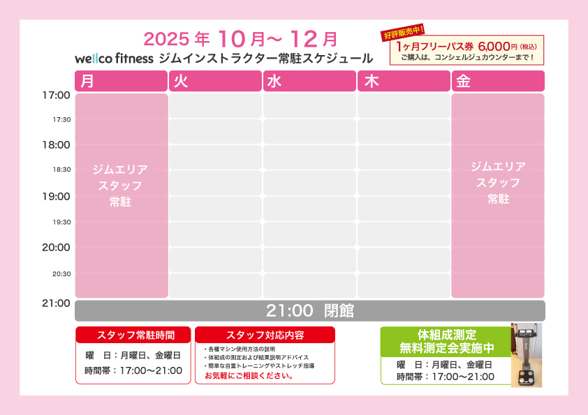 2025年10月〜12月スタッフ常駐スケジュール 投稿日:2025年10月10日2025年10月10日 投稿者: master20220406 カテゴリー: お知らせ 2025年10月〜12月スタッフ常駐スケジュールは下記のとおりです。 ↓画像をクリックするとPDFがみられます↓